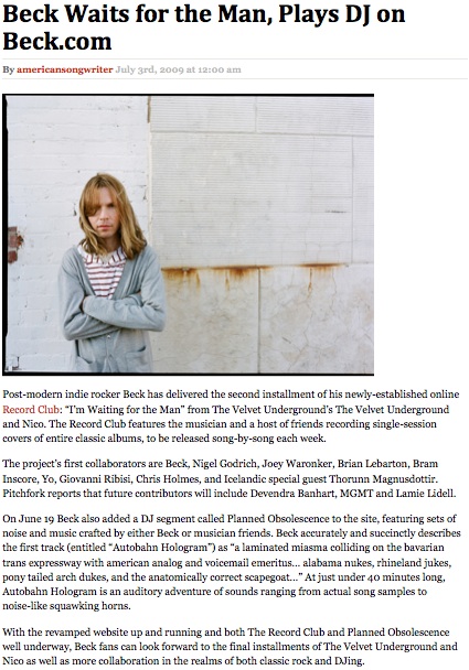 With the revamped website up and running and both The Record Club and Planned Obsolescence well underway, Beck fans can look forward to the final installments of The Velvet Underground and Nico as well as more collaboration in the realms of both classic rock and DJing.