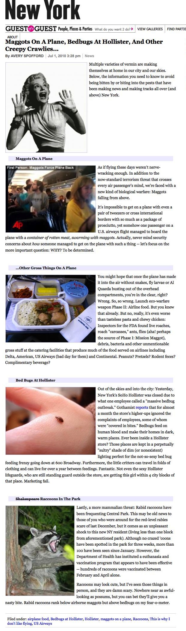 Multiple varieties of vermin are making themselves at home in our city and our skies. Below, the information you need to know to avoid being bitten by or biting into the pests that have been making news and making tracks all over (and above) New York.